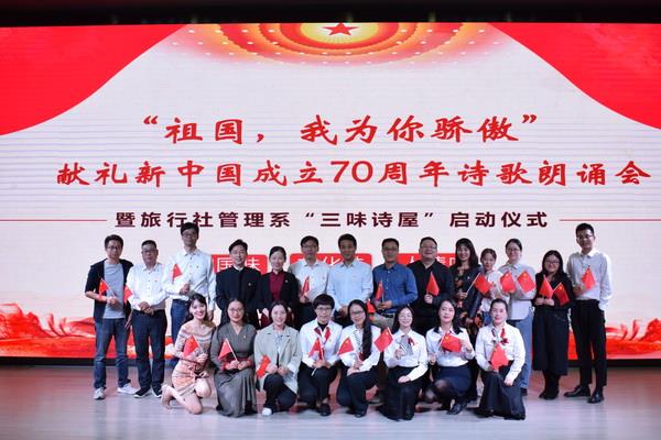 据悉,旅行社管理系党总支根据“不忘初心、牢记使命”主题教育要求,结合文旅融合的产业发展背景和旅游专业人才培养特色,推出党建文化教育品牌 “三味诗屋”。该品牌项目将紧紧围绕主题教育内涵和专业育人特色,以三味文化——即文化味、人情味、家国味为核心,引领全系师生的教学育人和发展。“三味诗屋”以诗歌朗诵会为开篇,将结合浙江省“四条诗路”建设、文旅融合及旅游专业学生人文素养和气质培养等持续推出全院性系列活动。