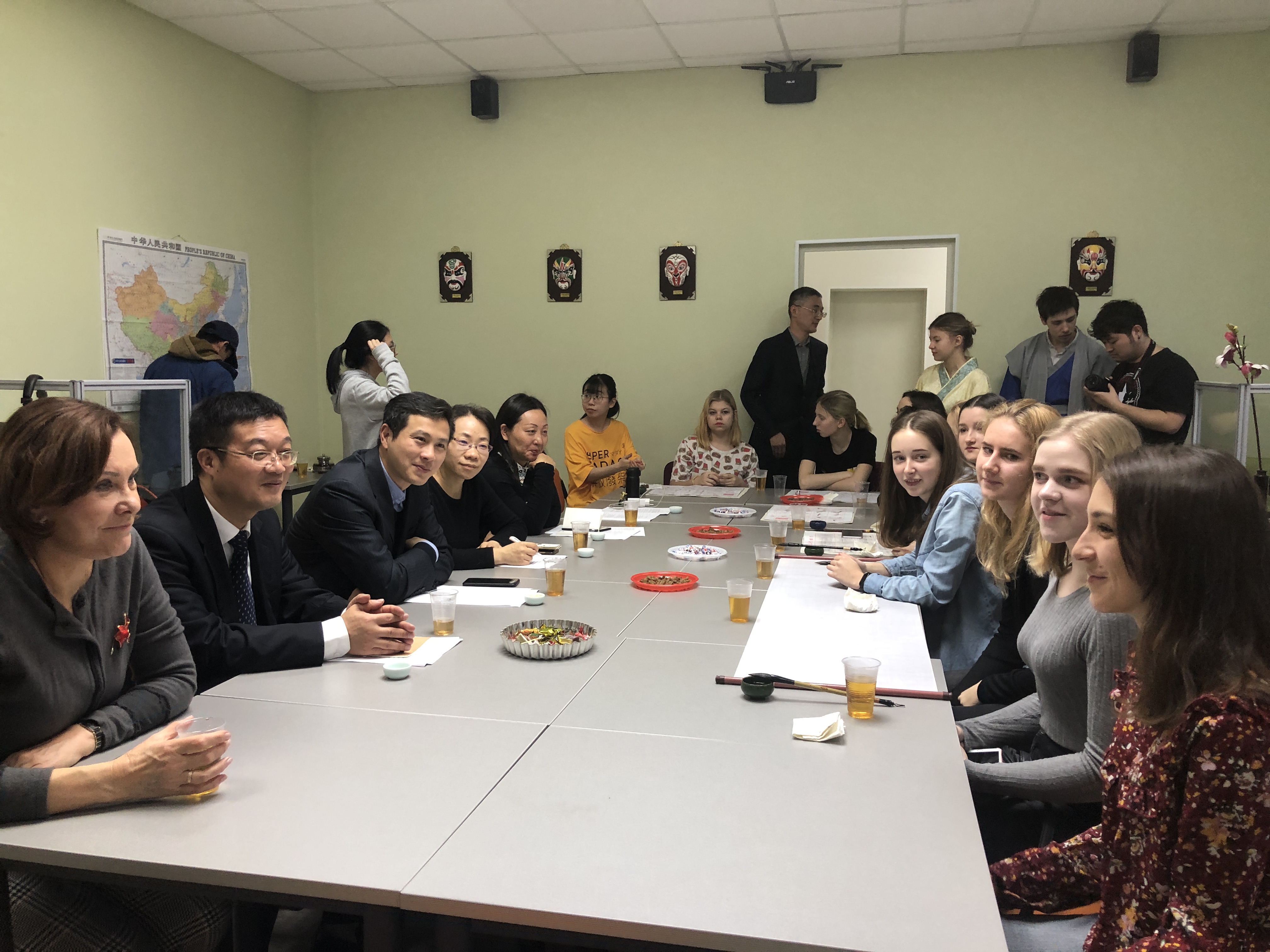 代表团一行现场考察了中俄旅游学院,并与中俄旅游学院的师生进行了亲切地交流。俄罗斯学生为代表团展示了中国茶道和中国书法,表达了对中国文化和语言学习的浓厚兴趣,期待明年能到中国继续学习。会后,代表团还随堂观摩了浙江旅游职业学院在俄留学生的专业课程,并与留学生进行了亲切的交谈。