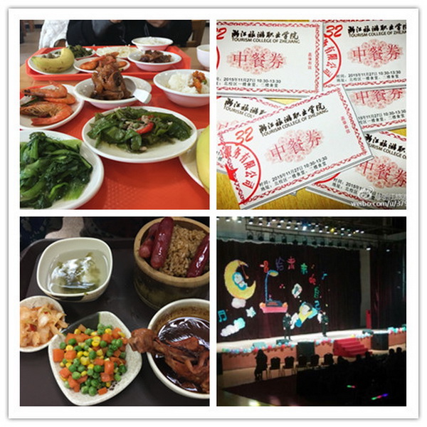 11月27日中午学院为全体师生员工推出免费中餐,南北食堂师生云集,为这项活动叫好。很多学生表示,即使排长队也要享用学院生日中餐。由图书馆负责的浙江旅游博物馆志愿者校史演讲比赛于当天下午在博物馆校史厅举行,来自学院各系部的11位同学参加了角逐。晚间,“唱给未来的自己”——第15届浙江旅游职业学院十佳歌手总决赛在精致馆登场,现场气氛十分热烈。