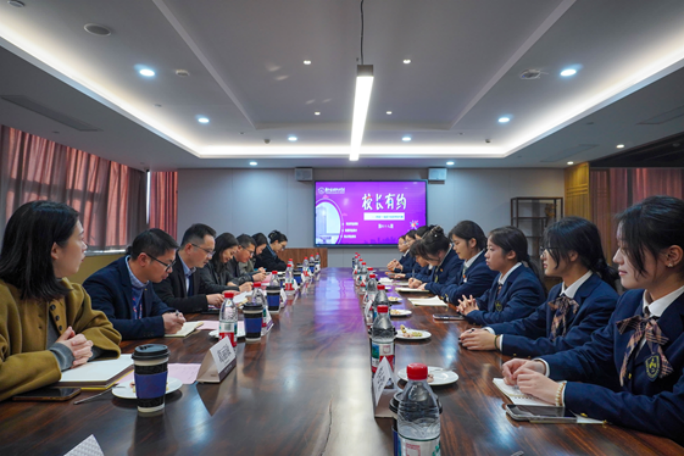 12月3日,第四十九期“校长有约”暨第三十一期“一站式”学生社区楼长层长院落会在杭州校区顺利举行。本次活动以“共话成长・共建家园”为主题,旨在搭建师生深度沟通平台,凝聚社区共建合力,助力学生全面发展。校长杜兰晓出席,学校相关部门、二级学院负责人及公寓网格员、层长等学生代表参加。