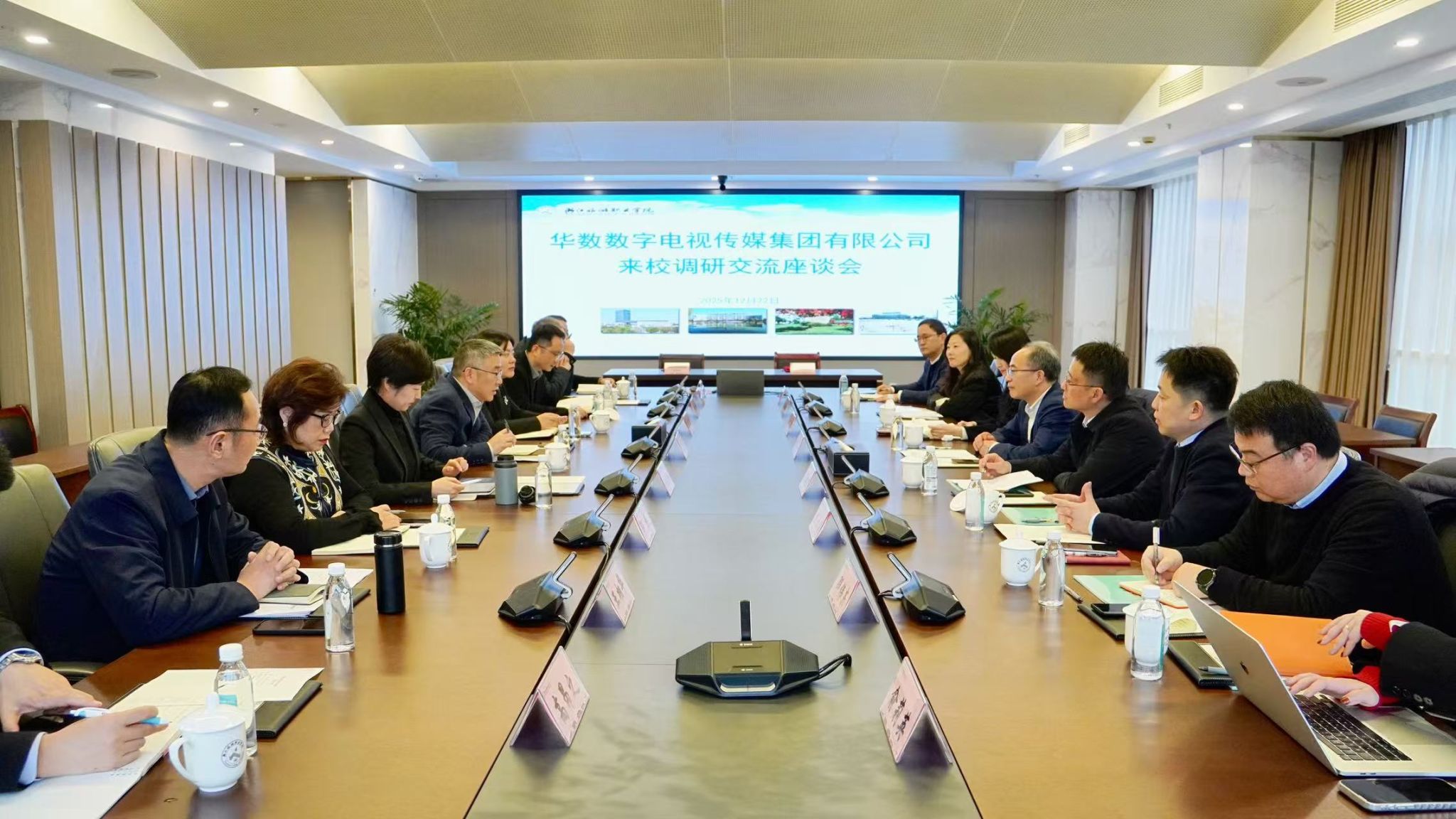 陆政品介绍了华数集团在智慧广电、数字文旅、信息技术服务等领域的产业布局与发展战略,并表示集团愿与学校一道,围绕智慧校园、数字文旅、融媒体传播、人工智能应用等重点方向,开展多层次、多形式的务实合作,推动产学研用深度融合,实现共赢发展。