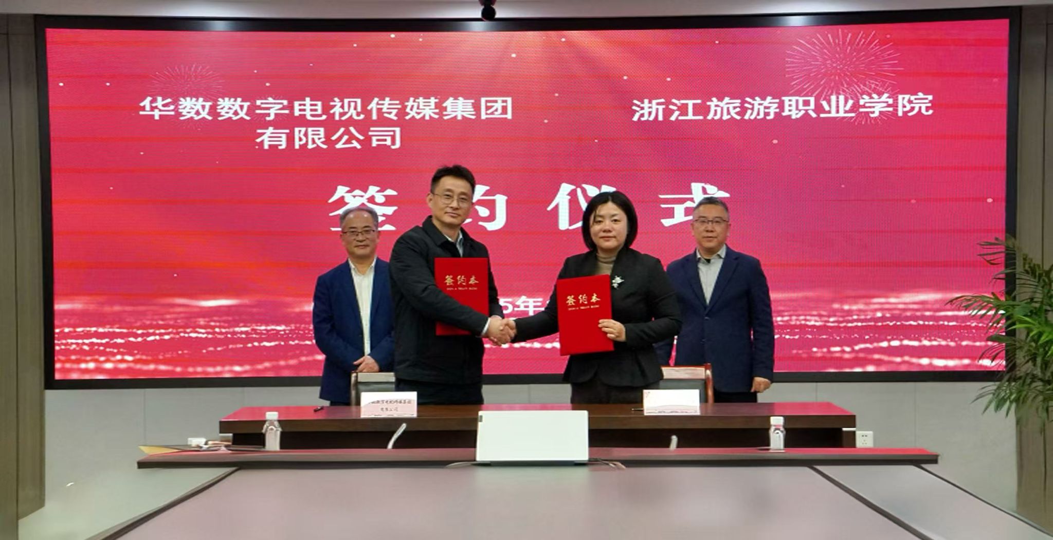 12月22日下午,学校与华数集团签署校企合作协议。华数集团党委书记、董事长陆政品,党委委员、副总经理葛翔里,学校党委书记毛东辉,党委委员、宣传统战部部长马盈出席签约仪式。华数传媒、华数科技、华数后勤等单位负责人,学校相关职能部门和二级学院负责人参加签约仪式。