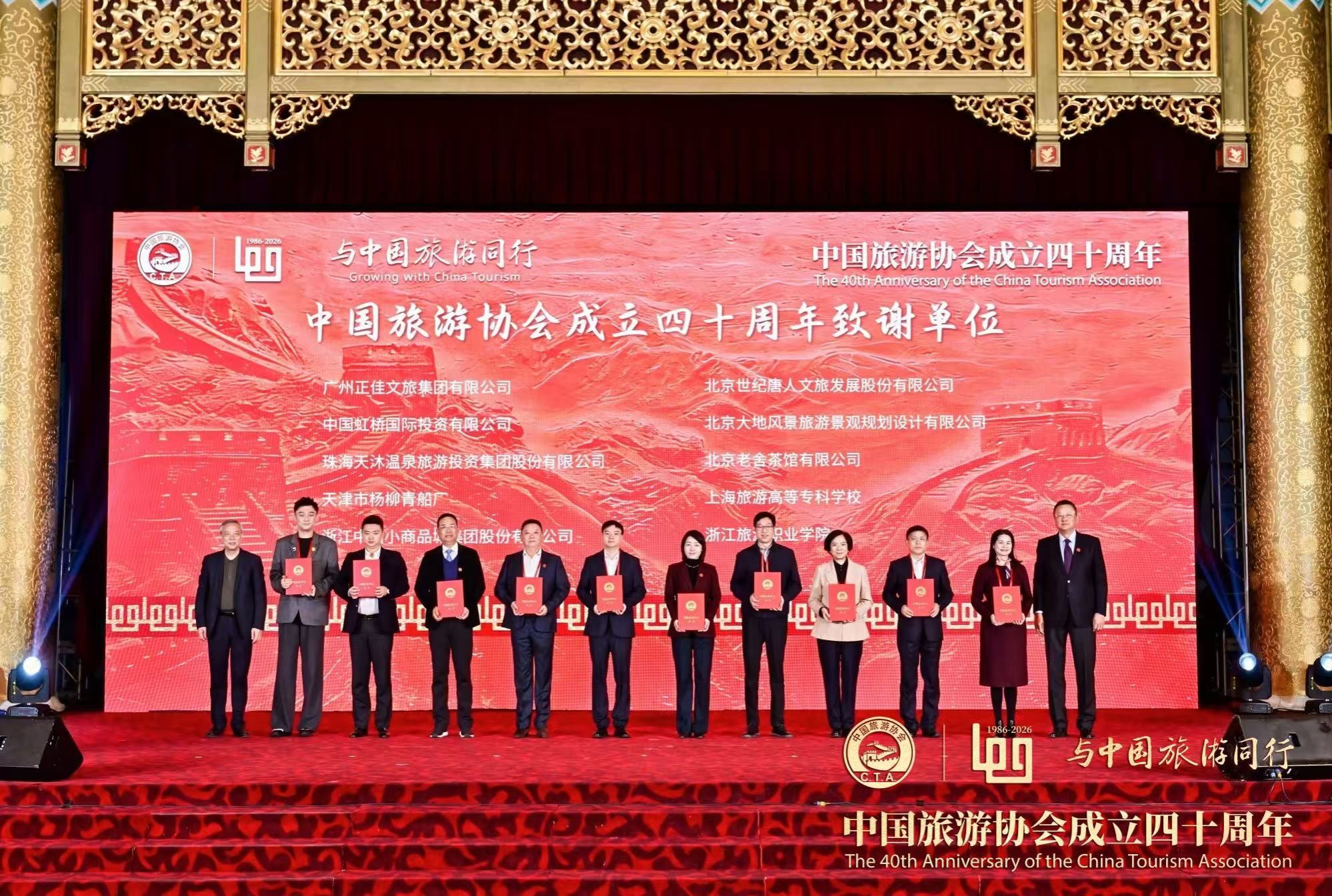 会上还举行了四十周年致谢单位与致敬个人仪式,中国旅游协会副会长姚军宣读致谢词并为做出突出贡献的40家单位颁发致谢状。校长杜兰晓受邀代表学校参加活动并接受表彰。