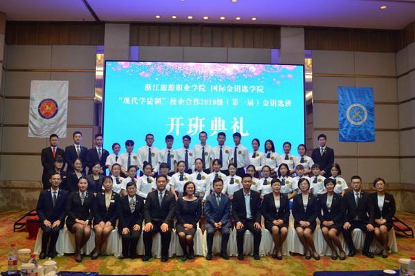 10月10日,酒店管理系2018级现代学徒制“金钥匙班”在慈溪杭州湾大酒店举行了开班仪式。酒店管理系副主任方敏、办公室主任侯宝锁、班主任老师赵炜和全体学生出席开班仪式。国际金钥匙学院荣誉董事胡云波、国际金钥匙学院院长助理张勇、杭州湾大酒店执行总经理童建东和近10名宁波地区金钥匙执委代表共同助力金钥匙开班。