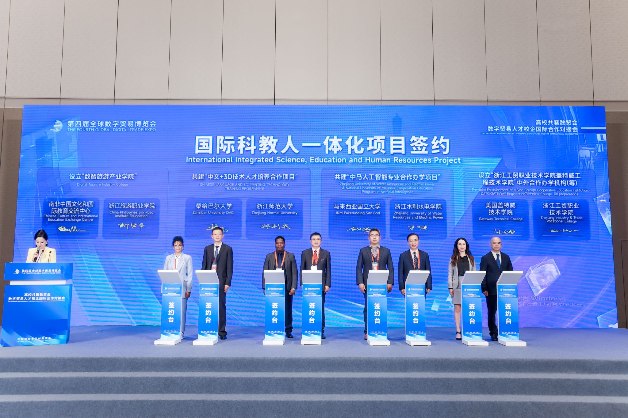 9月28日,作为第四届全球数字贸易博览会的重点活动,由浙江省人民政府主办,浙江省商务厅、浙江省教育厅、浙江省人力资源和社会保障厅承办的“高校共襄数贸会—数字贸易人才校企国际合作对接会”在杭州大会展中心举办,学校党委委员、副校长郎富平参加会议,国际教育学院负责人陪同。