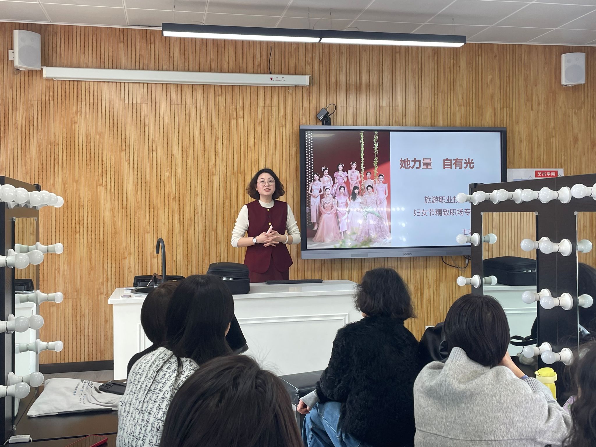 本次系列活动在“精致职场”造型课活动中拉开序幕。活动现场,在造型专业老师的指导下,教职工们解锁职场美丽密码,打造自信得体的职场形象,将节日温暖转化为工作与生活的力量。
